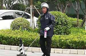 | 近期3V3籃球賽即將在奧體會(huì)展中心前面的廣場(chǎng)上舉行,甲方安排師傅們把籃球框安裝好后發(fā)現(xiàn)籃板上比較臟,需要清理干凈 |