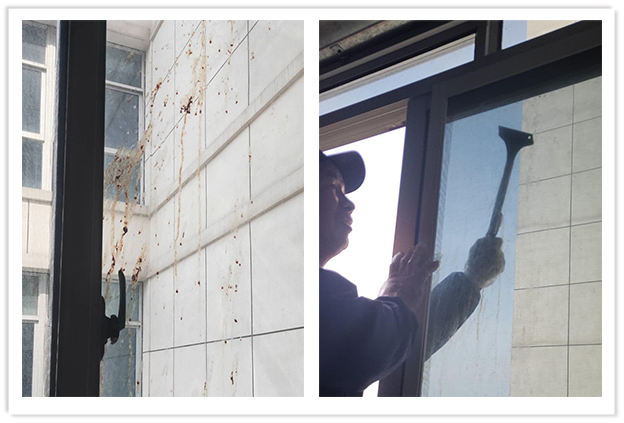 “好醫(yī)管”醫(yī)療事業(yè)部啟東人民醫(yī)院項目部,2019年4月17日,內(nèi)科主管在日常巡查過程中,發(fā)現(xiàn)ICU外側(cè)的玻璃上有大量血跡,立即打電話給清潔工,讓他帶著保潔工具到現(xiàn)場來處理。機動工友在第一時間內(nèi)趕到現(xiàn)場,搬來凳子站在上面先用鏟刀將干在上面的血印鏟掉,再用抹水器將玻璃清潔劑擦拭在玻璃上,再用玻璃刮刀刮干凈。清潔完玻璃上的血跡后,再噴上配比好的消毒液,將整塊玻璃都噴到位,再用玻璃刮刀刮干凈。這樣處理后,玻璃上的血跡清理干凈了,也消毒過了,這項任務就完成了。叫來主管檢查合格后,機動工友就帶著凳子和保潔工具撤離現(xiàn)場。我們作為高正健康產(chǎn)業(yè)集團的一員,有責任認真做好每一件事,樹立好的口碑,不斷提高服務水平和服務質(zhì)量,將公司不斷地發(fā)展壯大。