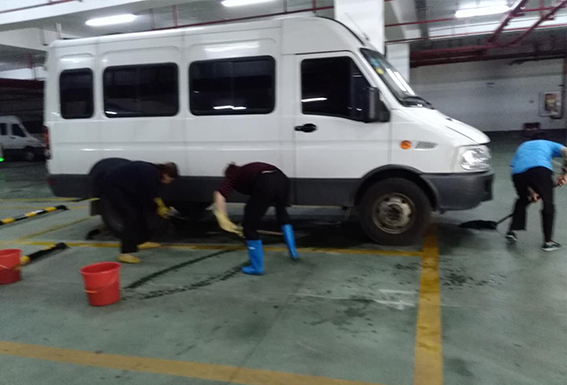5月10日,高正集團(tuán)煙草項目部物流保潔對整個物流區(qū)域衛(wèi)生大掃除,當(dāng)打掃地下車庫時,發(fā)現(xiàn)地下車庫有一大片油漬,是物流配送香煙的大貨車,保潔主管立刻上報甲方,并對油漬進(jìn)行大處理,大家在保潔主管的帶領(lǐng)下,不分彼此,緊密配合,由于車庫油漬太多,她們先是用油漬凈噴,再用廢抹布擦洗,最后用拖把拖,經(jīng)過大家3個多小時的齊心協(xié)力,地下車庫被清洗的干干凈凈,為甲方營造了良好的生活環(huán)境,同時獲得了甲方領(lǐng)導(dǎo)的一致好評!