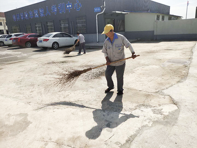 為整個駕校環(huán)境整潔度不受影響,我們安排3/4名保潔人員進(jìn)行對甲方辦公區(qū)域的清理工作,清理多余廢棄紙板箱,及下雨天已干的水泥塊,利用辣掃帚及鐵鍬進(jìn)行清理分工合作,不怕臟、不怕累,不放過任何一個衛(wèi)生死角,以實(shí)際行動投身到環(huán)境衛(wèi)生清理行動中,為干凈衛(wèi)生的考訓(xùn)場面貌貢獻(xiàn)力量。