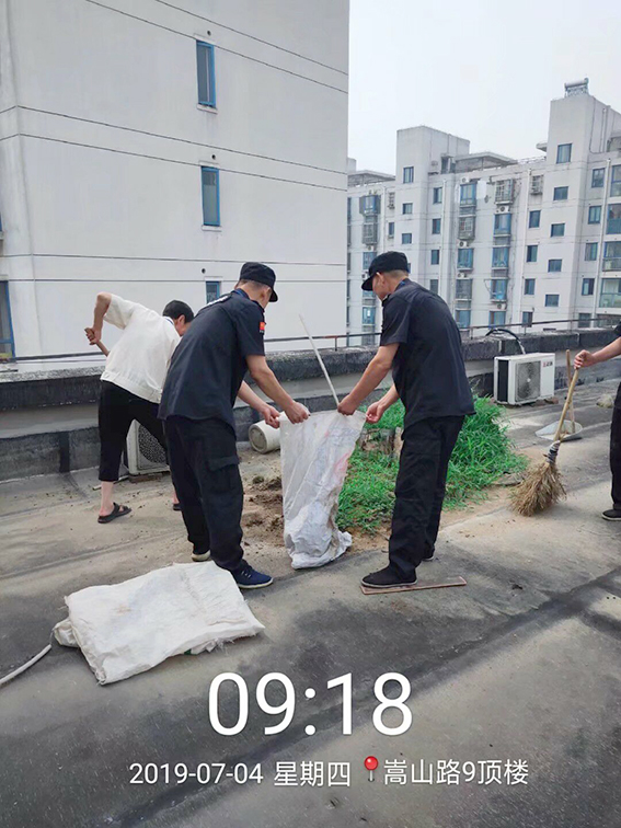 2019年7月4日,物管員在巡查中發(fā)現(xiàn),嵩山路9號的頂樓天臺有大量泥土?赡苁且恍I(yè)主自己拿上去種花的,現(xiàn)在不用了,忘記清理掉。物管員第一時間安排保潔隊長和幾名保安一起對頂樓天臺進行了徹底的清理。當天的天氣非常炎熱,但是大家克服一切困難,一心只為業(yè)主著想。因為天臺上雜物垃圾危害是很大的,一方面有味道,另一方面就是容易造成頂樓的業(yè)主家漏水。我們帶了很多麻袋,帶了鐵鍬和一些清掃的工具,花了兩個多小時,裝了十幾麻袋的泥土和雜物下去,工作量也是蠻大的。天氣雖然熱,但是我們的工作熱情一點沒也減少,圓滿的完成了清理頂樓天臺的工作,為迎接梅雨季節(jié)做好準備工作。