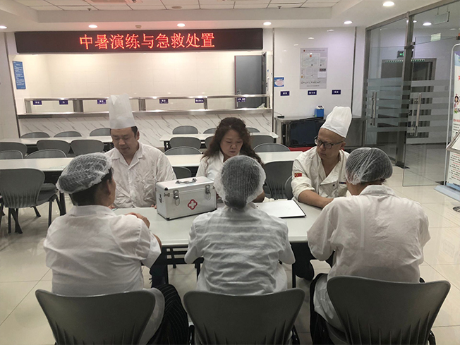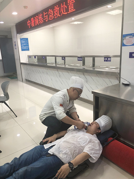 移動項目管理處以往也開展過多次現(xiàn)場模擬演練活動,因而取得了一定的經(jīng)驗和應(yīng)急處置方法:先將患者抬到通風(fēng)陰涼干爽的地方平臥,頭部抬高,再降溫,然后補水,如果中暑者神志清醒并無嘔吐,就喝一些涼水,既降溫又補充水分,在補充水分時可加入少量的鹽或小蘇打,千萬不可急于補充大量水分,否則會引起嘔吐、腹痛惡心等癥狀。通過這次演習(xí)廚房全體人員更加清楚和明確應(yīng)急救援預(yù)案的程序,井然有序地進行應(yīng)急預(yù)案實施,達到了演練目的。