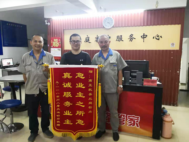 商鋪業(yè)主看到兩位師傅這樣為業(yè)主服務都感動不已,一致為維修師傅點贊,9-118業(yè)主更是寫了感謝信表達自己的感激之情,之后還做了一面錦旗,急業(yè)主所急,真誠服務業(yè)主,我們當即表示謝謝業(yè)主對我們的肯定。
