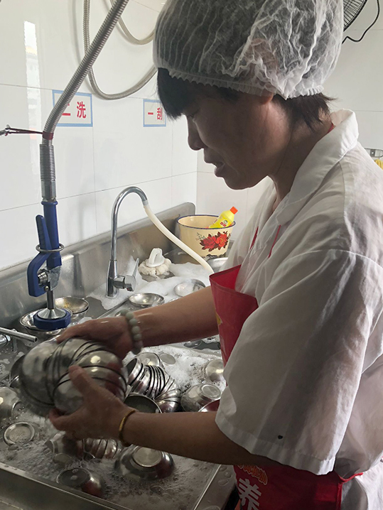 這樣的天氣里誰都想待在室內(nèi)空調(diào)房間里,想想我們食堂一線工作的師傅和阿姨,真是不易。可能你還在舒適的空調(diào)房間里享受著夢境,我們的師傅和阿姨穿上工作服帶上工作帽已經(jīng)在溫度高達50多攝氏度的廚房間里,為全天候用餐的人員準(zhǔn)備食材加工和烹飪,讓大家能吃上可口的飯菜,這才是早上,中午的氣溫才是溫度最高的時候。我們食堂一線工作的師傅和阿姨,在這樣的工作環(huán)境下依舊配合默契,師傅們菜品進行粗加工到烹飪,阿姨在素菜加工間和洗碗間邊切配菜、洗菜和一起洗碗。他們身上的工作服都濕透啦,但我們的師傅和阿姨們還是在井井有條忙著手上的活,洗碗阿姨在清洗下水池和蒸飯里的水垢時她們臉上的汗珠是順著臉頰往下流,但是手中的清洗工作始終在忙著。