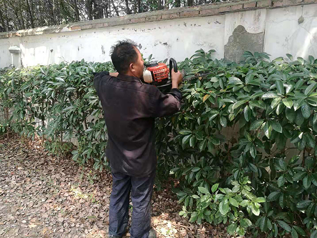 綠化人員又對大樓北側(cè)茶花樹進行保養(yǎng),修整。對茶花樹枯死樹枝進行修剪,其中一棵因病蟲害而枯死,綠化人員在保安的協(xié)助下挖掉枯死茶花樹,然后修整樹坑,上面種上了新的草坪。