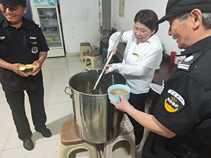 驕陽似火,酷熱難耐,持續(xù)的高溫天氣給戶外工作者帶來了嚴(yán)峻 “烤” 驗(yàn)。高鐵北站管理部時(shí)刻牽掛著場(chǎng)站保安、保潔人員的身體健康,精心組織食堂為他們熬制綠豆湯,送去清涼與關(guān)懷。