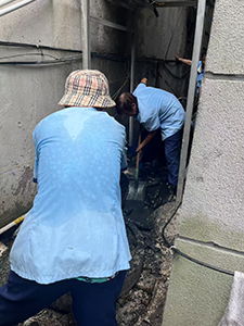 近期,維修師傅巡查發(fā)現(xiàn)商鋪圍墻外有一個(gè)角落有很多窨井污垢堆積,異味嚴(yán)重。為了還業(yè)主一個(gè)良好的生活環(huán)境,物業(yè)保潔團(tuán)隊(duì)緊急行動(dòng),全力安排保潔人員進(jìn)行清理工作。
