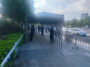 設(shè)施到位后,安保人員同步強(qiáng)化現(xiàn)場(chǎng)管理:在雨棚周邊劃定候車區(qū)域與車輛通道,避免人車混流;安排專人引導(dǎo)網(wǎng)約車按序?、旅客排隊(duì)候車,減少無序等待造成的時(shí)間浪費(fèi);同時(shí)利用廣播循環(huán)提示候車須知,提醒旅客注意物品保管。一系列舉措既保障了乘車秩序井然,又讓旅客在 35℃以上的高溫中感受到實(shí)實(shí)在在的清涼。