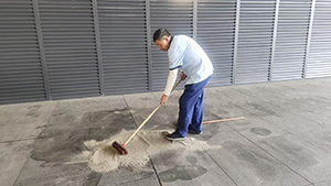 保潔班長接到報告后,迅速調(diào)配保潔員攜帶沙子、拖把、水桶及趕赴現(xiàn)場,并通知保安班長及管理部。抵達現(xiàn)場后,保潔團隊按照 “先控后清” 原則,先在漏油區(qū)域均勻鋪設(shè)沙子,利用沙子吸附特性快速阻斷油污擴散,隨后用拖把將吸附油污的沙子集中清理至專用收集桶,再用清水對地面進行二次擦拭,確保油污徹底清除。經(jīng)核查,此次漏油為施工車輸油管路輕微滲漏所致,保潔團隊從發(fā)現(xiàn)情況到完成處置僅用時 25 分鐘,處置過程規(guī)范高效,有效避免了油污對站屋地面及環(huán)境造成污染,也保障了高鐵北站站屋通道的正常通行秩序。