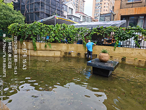 別墅區(qū)景觀池作為社區(qū)重要的生態(tài)景觀節(jié)點,不僅承擔著美化環(huán)境的作用,更是業(yè)主休閑觀賞的重要場所。此次發(fā)現(xiàn)的白色垃圾主要包括塑料袋、紙巾、食品包裝等,部分垃圾漂浮在水面,部分則因水流帶動貼附在池壁或沉于池底,給清理工作帶來了一定難度 —— 由于水池需保持正常水位以維持景觀效果和池內(nèi)水生植物生長,保潔人員無法直接排空水池作業(yè),只能借助專用工具開展清理。
