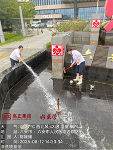 清理前,外圍主管對噴泉水池進(jìn)行了詳細(xì)勘察,發(fā)現(xiàn)池底沉積了大量淤泥、落葉及微生物污垢,部分噴頭因水垢堵塞導(dǎo)致水花效果不佳。工作人員首先排空池水,利用高壓水槍沖洗池壁,隨后用鏟子、地板刷等工具清除池底頑固淤泥和雜物,確保無死角。