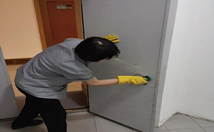 處理過(guò)程中,朱阿姨展現(xiàn)出非凡的耐心與專業(yè)素養(yǎng)。她反復(fù)調(diào)整清潔劑配比,采用物理擦拭與化學(xué)分解相結(jié)合的方式,對(duì)門框縫隙、閉門器等關(guān)鍵部位進(jìn)行深度護(hù)理。為避免清潔液流入防火密封條,連續(xù)奮戰(zhàn)數(shù)小時(shí)直至污漬徹底清除。期間婉拒同事?lián)Q班提議,堅(jiān)持“問(wèn)題不過(guò)夜”的服務(wù)準(zhǔn)則。