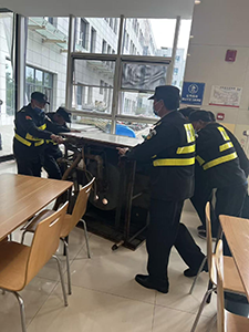 面對時間緊、任務(wù)重的挑戰(zhàn),保潔隊員們展現(xiàn)了專業(yè)的素養(yǎng)。他們手持各類清潔工具,對灶臺、地面、門窗及各類設(shè)施設(shè)備進行了無死角的擦洗與消毒,不放過任何一處衛(wèi)生死角。與此同時,平日里負責安保秩序的保安隊員們也主動請纓,迅速轉(zhuǎn)換角色,投入到搬運重物、清理建筑垃圾、沖洗地面等強度高、耗時長的體力工作中。兩支隊伍默契配合,揮汗如雨,現(xiàn)場一派繁忙景象。