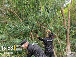 近日,保安部門帶著修枝剪、鋸子等工具,分工協(xié)作、有條不紊。大家先仔細(xì)排查每一處行道樹,對延伸至人行道、影響通行的叉枝做好標(biāo)記,再小心翼翼地修剪;遇到較粗的枝條,幾人合力固定、分段切割,避免枝條掉落傷人;修剪后的枝條被及時(shí)收攏、搬運(yùn)至指定堆放點(diǎn),確保公區(qū)道路暢通無阻。