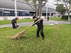 視察前夕,保潔部便啟動(dòng)了“全域清潔”專項(xiàng)計(jì)劃:針對(duì)北廣場(chǎng)綠化帶、步行通道、候車區(qū)域等重點(diǎn)區(qū)域,增派人手開(kāi)展落葉清掃、地面沖洗、設(shè)施擦拭等工作。當(dāng)天,保潔人員著重對(duì)廣場(chǎng)草坪內(nèi)的落葉、步道縫隙的雜物進(jìn)行 “拉網(wǎng)式” 清理 —— 有的俯身清掃草坪角落的殘葉,有的配合清運(yùn)堆積垃圾,連座椅、欄桿等細(xì)節(jié)處也逐一擦拭除塵,F(xiàn)場(chǎng)可見(jiàn),安保人員也主動(dòng)加入清潔隊(duì)伍,與保潔人員協(xié)同配合,確保每一處區(qū)域都干凈整潔。