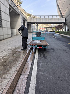 保安龍拾如身著厚重的棉衣,手持鐵鍬,開著那輛略顯陳舊卻堅實可靠的三輪車,圍繞著奧體緩緩行駛。他的目光敏銳而專注,不放過任何一個可能存在積雪結(jié)冰的角落。當(dāng)發(fā)現(xiàn)那些頑固的冰雪時,他便停下車子,熟練地跳下車,開始與冰雪展開一場“戰(zhàn)斗”。
