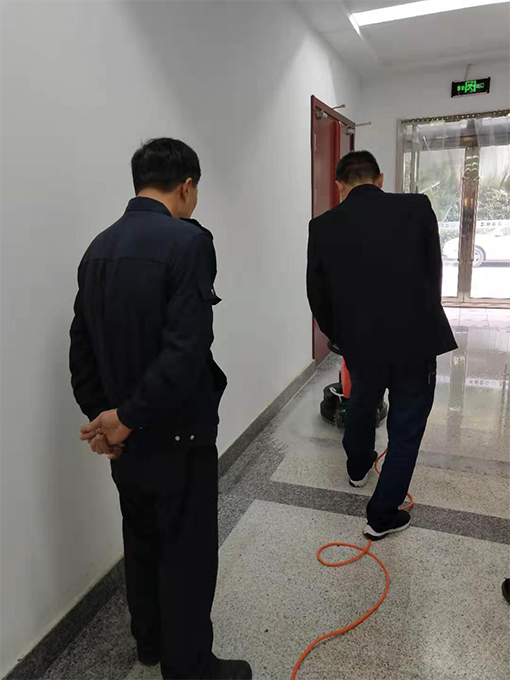 9月下半旬項目主管在日常每周檢查衛(wèi)生以及安全時,發(fā)現(xiàn)五樓會議層電梯門口以及一樓接待大廳的地磚花崗巖石材都有深淺不一的污痕,地面顯得非常臟亂,在使用潔而亮堿水等一系列清潔方式之后都沒有很好的效果。就去跟特種設(shè)備安全監(jiān)督檢驗研究院甲方建議是否需要借助外力來恢復地面整潔,結(jié)果是需要借助外力,項目部聯(lián)系公司總部派專項技術(shù)人員來看了下覺得需要翻新地面,情況匯報甲方后決定自己購買翻新機,2019年10月29日機器藥劑以及人手都準備好的情況下,劉師傅姜師傅開始觀摩公司專項技術(shù)人員怎么安裝翻新機并且記錄步驟,從后廚門口開始做翻新地面,更換磨片開始翻新,姜師傅以及劉師傅并且周邊單位過來觀摩現(xiàn)場學習機器使用與注意事項,藥劑的比例, 29日學習了翻新技術(shù),30日上午鄧師傅開始示范拋光地面,要換上別的紅磨片開始新的步驟,劉師傅姜師傅也積極在旁邊記錄以及學習,以方便今后地面的維護保養(yǎng)。這一次我們學習到了地面的翻新打磨拋光以及打蠟,一次維護能夠長時間保持地面的干凈整潔。