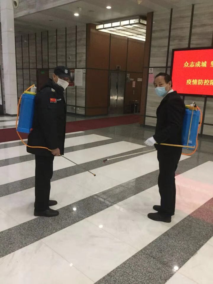 自新型冠狀病毒感染的肺炎疫情爆發(fā)以來,水務(wù)大廈物業(yè)管理部切實(shí)配合甲方工作部署,遵循公司要求及甲方相關(guān)文件要求,堅(jiān)決做好疫情防控工作。我們物業(yè)管理部積極準(zhǔn)備消毒水、消毒片、口罩、噴霧、溫度槍,所有的戰(zhàn)疫物資我們都是通過甲方和公司的渠道準(zhǔn)備的,這是一場沒有硝煙的戰(zhàn)爭,甲方下達(dá)死命令必須對(duì)整棟大樓嚴(yán)防死守,給整棟大樓進(jìn)行消毒不錯(cuò)過任何一個(gè)會(huì)傳染的地方,甲方也是全力配合進(jìn)出登記量體溫。為了減少接觸與人員流動(dòng),我們項(xiàng)目上重新對(duì)人員上班時(shí)間做出調(diào)整,保潔減少一半人員上崗,摸清排查所有員工在節(jié)假日的去向進(jìn)行人員統(tǒng)計(jì),首先加強(qiáng)我們自己物業(yè)部門的人員健康問題,才有資格服務(wù)好甲方對(duì)甲方人員進(jìn)行健康檢測。