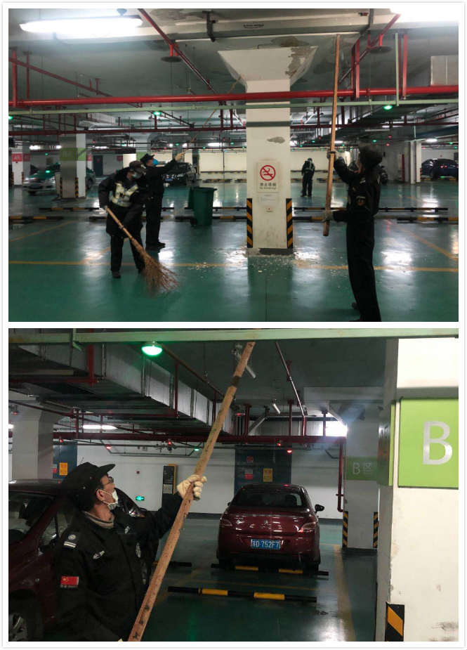 高鐵北站物業(yè)管理部開展“全員勞動日”活動到至今已有1年了,這項活動開展到現(xiàn)在頗有成效。近期雨水和降溫已開始“配送”,陰雨潮濕天氣導(dǎo)致地下停車場內(nèi)頂部“脫皮”,時常會有白灰掉落至機(jī)動車上,雖已多次上報維修班維修清理,天氣潮濕時仍會有“脫皮”現(xiàn)象。為了防止“脫皮”的白灰弄臟或刮花車位上的機(jī)動車,區(qū)域保安在掉落處的機(jī)動車上放置草墊,確保機(jī)動車安全,F(xiàn)室內(nèi)潮濕將有大面積的白灰脫落,為了能更好的開展停車場內(nèi)工作,2020年2月29日下午13點30分,因疫情期間停車場內(nèi)車輛較少,由劉源帶領(lǐng)保安對地下停車場的進(jìn)出口、車位的墻面白灰進(jìn)行清鏟,確保不會因停車場內(nèi)頂部“脫皮”導(dǎo)致意外事件發(fā)生。同時陰雨潮濕天氣有利于細(xì)菌和病菌滋生,需加強(qiáng)提示員工防寒保暖,增強(qiáng)免疫力,謹(jǐn)防感冒和呼吸道疾病,自覺佩戴口罩,避免接觸人,注意個人衛(wèi)生,做好現(xiàn)場各區(qū)域消殺工作,保持積極心態(tài)支持疫情防控工作。