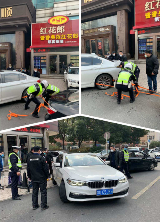 3月16日早高峰時(shí)段,一輛白色寶馬車因?yàn)楣收峡ㄔ诹藝鷻谏希略诹穗x投資廣場(chǎng)停車場(chǎng)入口不遠(yuǎn)處的路中間,導(dǎo)致業(yè)主的車輛無(wú)法正常進(jìn)入停車場(chǎng)。項(xiàng)目部陶經(jīng)理在發(fā)現(xiàn)此情況后,盡管馬路不在物業(yè)管理范圍,為了業(yè)主能準(zhǔn)時(shí)上崗,她積極組織輪崗的保安以及工程部師傅們,協(xié)助趕來(lái)的交警一起挪車。經(jīng)過(guò)大家共同的努力下,用時(shí)30分鐘,終于將車子成功挪出。