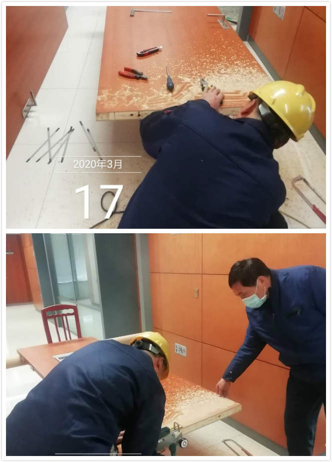 春光明媚,水務(wù)大樓物業(yè)管理部接到甲方通知需要在22樓裝修出一個(gè)健身房。接到任務(wù)后我們的維修師傅擼起袖子說干就干,戴好口罩,背起工具包就上了22樓開始大整改。辦公室里面全部清掃干凈,垃圾清理掉,門的大小發(fā)現(xiàn)不合適,我們的維修師傅一點(diǎn)一點(diǎn)的量尺寸,拉起電線把多余的門邊鋸掉,刨光滑,以防刮到手。經(jīng)過大家一下午的努力,終于我們的健身房改造成功!目前只需要等待器材的引進(jìn),就可以每日打卡健身了。