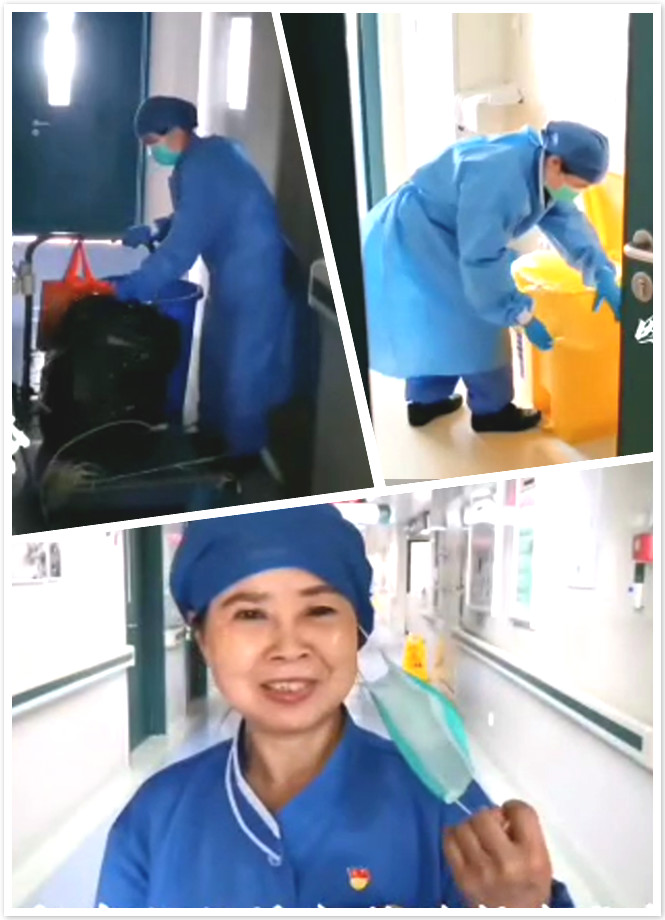 疫情期間,住院部20樓的老干部病房長(zhǎng)年滿員,住的都是已經(jīng)退休的老軍人、老紅軍、老干部,保潔工作量大。由于武漢封路,另外一個(gè)保潔師傅無(wú)法按時(shí)返崗,江漢娥一個(gè)人挑起了整個(gè)20樓的保潔工作,每天早上5點(diǎn),她就開(kāi)始忙碌起來(lái),打掃所有的醫(yī)生辦公室、專家辦公室、護(hù)士值班室、護(hù)士導(dǎo)醫(yī)臺(tái)、病房、通道以及大廳區(qū)域。她打掃衛(wèi)生工作得到了科室的一致好評(píng),科室的同事們也會(huì)每天為她帶來(lái)新鮮可口的飯菜,解決用餐問(wèn)題。