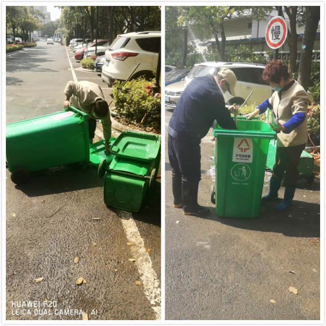 保潔員們先把垃圾桶內(nèi)的垃圾清理干凈,用水管對(duì)垃圾桶進(jìn)行里里外外的沖洗,然后用刷子蘸上洗衣粉不停的反復(fù)進(jìn)行刷洗,就像給自己的孩子洗澡一樣用濕毛巾仔細(xì)擦拭,污漬、油垢的地方保證清洗干凈,最后再用清水進(jìn)行沖洗。經(jīng)過一上午的奮戰(zhàn)終于將原本污穢不堪的垃圾桶變成了一只只干凈整潔的垃圾桶。清洗完畢,甲方看到此舉對(duì)我們物業(yè)人員大加贊賞。