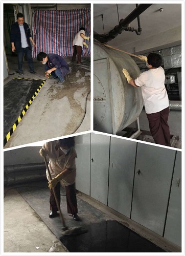 今年由于疫情的發(fā)生,暫?照{(diào)機(jī)組的開啟。投資廣場項(xiàng)目部在響應(yīng)市防疫小組的號召的同時,也積極開展機(jī)房清潔保養(yǎng)大會戰(zhàn)。工程部的師傅們一上班就協(xié)同保潔部的員工拿著抹布在機(jī)組的外殼上小心翼翼的擦拭。只聽見工程部的孫師傅一邊擦一邊嘴里還要囑咐:“小心啊,注意安全!北嵅康牟芫辗荚诮^緣地毯上來來回回的拖了好幾遍,因機(jī)器的頂端人所不能及,于是保潔部的曹菊芳拿著拖把,站在機(jī)器的邊緣,一點(diǎn)一點(diǎn)的伸長胳膊把頂端的積灰和蜘蛛網(wǎng)完全的擦干凈,不一會一個干凈整潔的機(jī)房呈現(xiàn)在大家的面前。