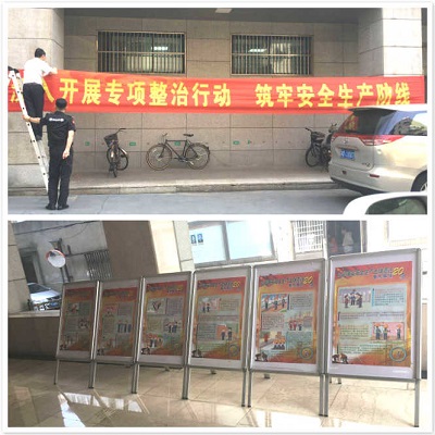 今天一早,立崗結(jié)束,保安隊(duì)長(zhǎng)王宏臣帶領(lǐng)保安一起,在煙草項(xiàng)目后院懸掛“深入開(kāi)展專題整治行動(dòng) 筑牢安全生產(chǎn)防線”的主題橫幅。并在煙草大廈辦公大廳、電瓶車車庫(kù)等張貼了安全知識(shí)及安全宣傳標(biāo)語(yǔ),讓員工在知識(shí)學(xué)習(xí)中提高安全素養(yǎng),在事故警示中強(qiáng)化安全意識(shí),進(jìn)而在實(shí)際工作中規(guī)范安全行為。