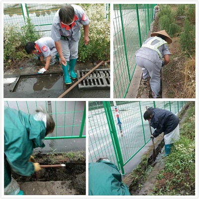 溧陽駕培中心科三大車場(chǎng)地本是A2大車訓(xùn)練的場(chǎng)地,現(xiàn)被改造成A2大車考試的場(chǎng)地。此場(chǎng)地因原本只用做訓(xùn)練從未進(jìn)行過打掃,地溝也從未清理過;現(xiàn)因要用作考試,為確保不影響大車正?荚嚕(xiàng)目部安排了兩名保潔對(duì)大車場(chǎng)地邊的淌水溝進(jìn)行清理工作。地溝寬度較窄,里面全是磚頭、泥土,鐵鍬鏟不動(dòng),只能用小鋤頭先將磚頭扒開,用手撿出來。這兩日梅雨日,下著大暴雨,地溝堵塞,大車場(chǎng)地邊角被淹全是水,地溝里的泥變成了爛泥,既有水又有泥,這又給保潔增加了清理難度。我們的保潔員身穿雨衣、腳穿雨鞋、手帶乳膠手套,冒著雨在進(jìn)行清理。一名保潔用小鋤頭將地溝里的磚頭扒起,用手一塊一塊的揀出,另一名保潔員用圓頭鐵鍬側(cè)著對(duì)地溝里的泥進(jìn)行清鏟,雖然她們?nèi)蔽溲b,仍被淋濕,身上也沾滿了泥,但她們?nèi)允锹耦^苦干,不辭辛苦。雖體力有限,但干活卻是不含糊的,既然要做,那就要做到最好。