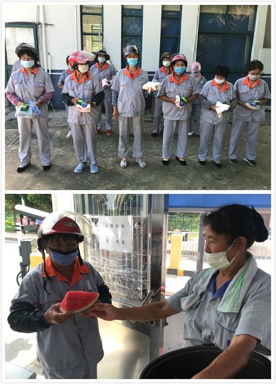 高溫作業(yè)不容忽視、我們對每一位一線員工進(jìn)行慰問,同時也對每一位員工進(jìn)行鼓勵,并肩對抗高溫天氣,做好每天的工作,愿愛心湯、清涼瓜、夏令用品給員工帶去一份清涼,一份關(guān)懷,一份愛心。