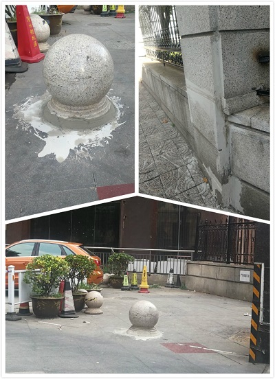 高正集團(tuán)投資廣場項目部在發(fā)現(xiàn)這一不文明行為之后,立即安排工程部師傅將石球固定起來,既確保了輔樓地下室入口處的規(guī)范停車,也阻止了那些隨意亂停車的不文明行為。工程部師傅們還發(fā)現(xiàn)廣場圍欄外墻的石材有些剝落了,就利用剩余的水泥,將石材修補(bǔ)固定住。